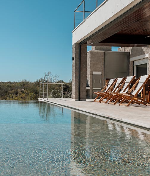 La Casa se encuentra rodeada de flora autóctona y viñedos, en perfecta armonía con su entorno. La impresionante vista de la Cordillera de los Andes enmarca una experiencia íntima y de confortable lujo.